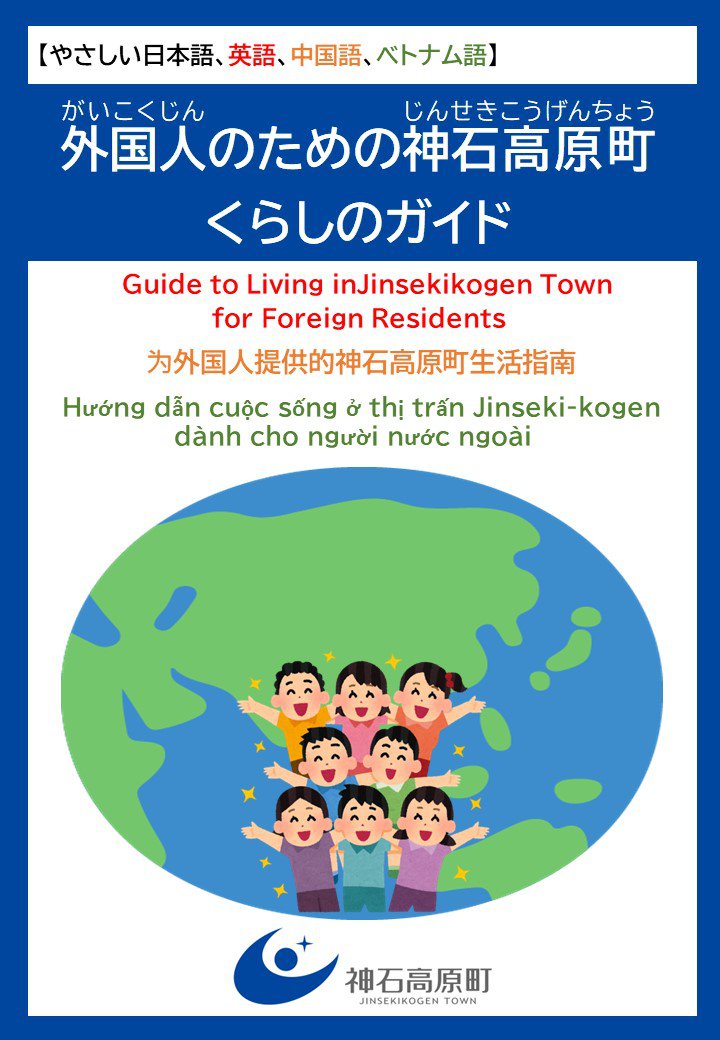 神石高原町(じんせきこうげんちょう)での生活(せいかつ)に役立(やくだ)つ情報(じょうほう)が書(か)いてあります。